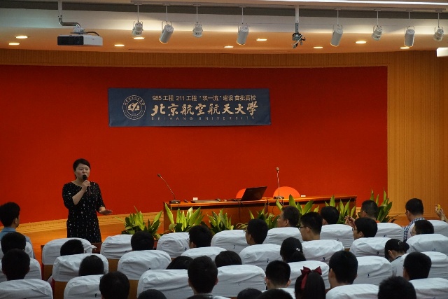 接下来,由招生组副组长王晓慧老师做了北京伊人99招生主题报告。她从北航光辉历史、北航发展现状、高考招生政策等方面结合宇航学院航天特色全面深刻地介绍了北航。并鼓励同学们积极探索、勇于创新,不断拓宽视野,成就更好的自己。