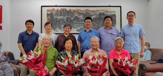 学院向6位寿星敬献了鲜花和慰问品,一起合影留念。