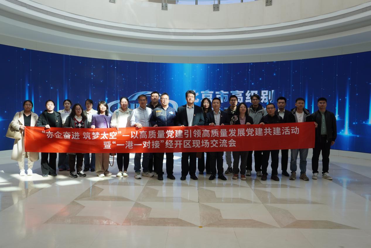 为深化产学研协同,以党建引领凝聚商业航天产业发展合力,2025年4月2日,宇航学院党委书记徐亚军带队赴北京市经济技术开发区(后文简称“经开区”)亦企服务港瀛海港,双方联合开展了“亦企奋进,筑梦太空”—以高质量党建引领高质量发展党建共建活动。经开区工委组织人事部人才高地处、瀛海镇经济发展办公室、亦企服务港荣华港等单位负责同志一同参加活动。