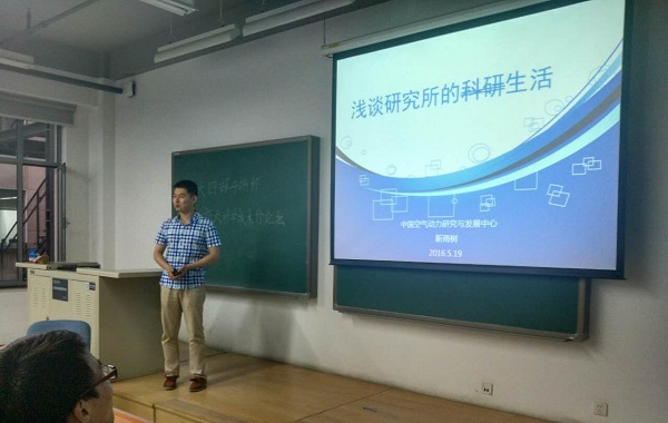 在2016年5月份,宇航学院研究生会邀请了中国空气动力研究与发展中心超高速动力研究所助理工程师靳雨树为同学们带来一场报告会。靳雨树以其在院所的工作经历为主线,结合自己的工作情况、工作环境以及生活感悟,针对进入下学期的宇航学院研一学生,进行了主题为“浅谈研究所中的科研生活”的专题讲座,为他们提供了研究生科研、学习以及将来工作的规划指导,开阔了他们的视野,让他们有了更多的科研兴趣和想法,以便研一学生迅速融入到研究生的科研生活中,为自己之后的工作生活做好准备。