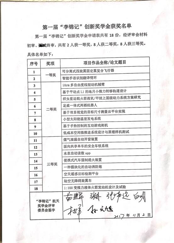 会上,宇航学院党委副书记苗建军致欢迎辞并介绍了到场的设奖单位和学校双方评审委员会成员,“李锦记”航天奖学金校内宣传及选拔情况。第六届“李锦记”航天奖学金申请表共30份,经评审会材料初审,有14名学生获得一等奖面试资格。答辩学生主要从思想政治、学业成绩、获奖成果、科技创新、文体竞赛、社会实践等方面展开论述,汇报了各自学习、生活、工作等方面的成长经历与学习感悟。评委根据候选人提交的材料及现场表现进行提问和做出综合评价。第六届“李锦记”航天奖学金最终选出10名学生获一等奖,20名学生获二等奖。第一届“李锦记”创新奖学金申请表共18份,经评审会材料审核,共有2个项目获一等奖,8个项目获二等奖,8个项目获三等奖。