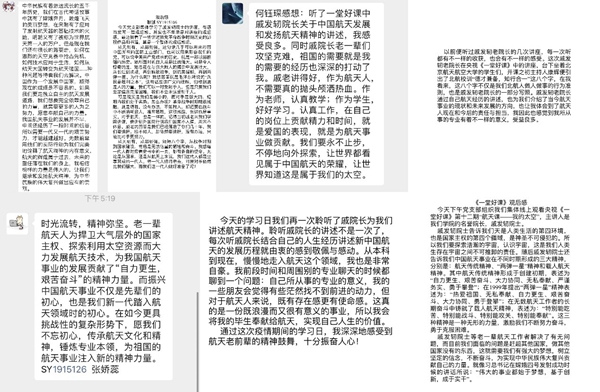 在课上,戚老强调航天精神,强调爱国精神,在肯定能力的同时也指明了我国航天的劣势与不足。并用习近平总书记的一句话与我们共勉:伟大事业都始于梦想,基于创新,成于实干。大家在腾讯会议平台充分交流,不仅有对老一辈航天人的敬仰,也有对传承航天精神的责任感与使命感。其中程明同志还用专业知识在国际航天对抗方面进行剖析,指明当前我国航天事业还需努力,真正实现航天强国梦。