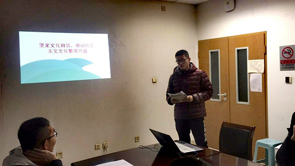 2017年12月27日晚9:00-10:30,宇航学院ZY17151党支部和SY16153党支部在新主楼B1128联合举行十九大精神学习交流会。会议由SY16153党支部的付小宇同志主持。