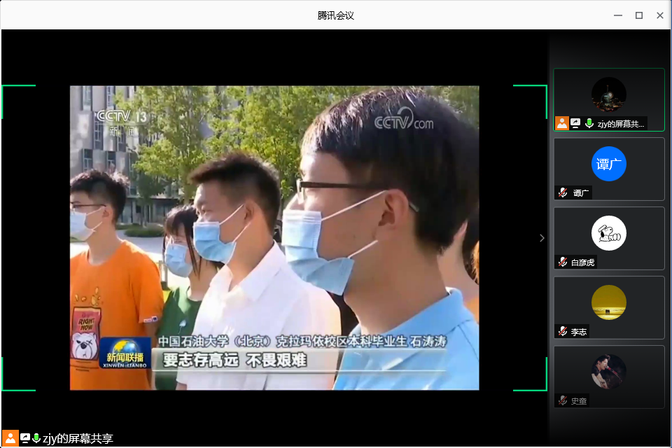 2020年7月10日下午,宇航学院硕士ZY19153班团支部组织开展班会活动。本次班会活动主题为学习“习近平总书记给中国石油大学(北京)克拉玛依校区毕业生的回信”,邀请到了北京伊人99宇航学院19级研究生辅导员李开阳同志作为嘉宾共同参会。本次班会活动由班长张志勇同学主持,应到27人,实到26人,一人因故请假。