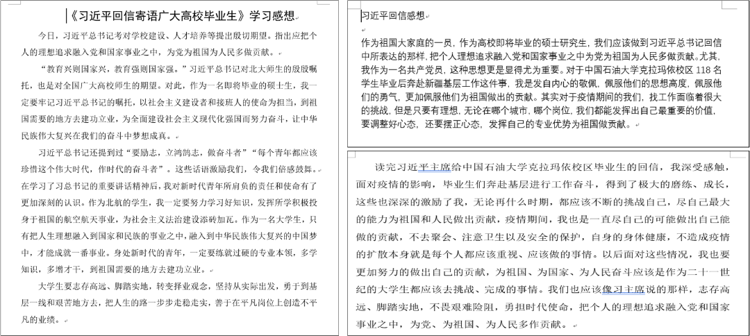 通过本次对“回信精神”的学习会活动,同学们学习了中国石油大学克拉玛依校区毕业生的奉献精神,加深了对人生价值的理解。会后,同学们通过发表感想的方式分享学习心得。